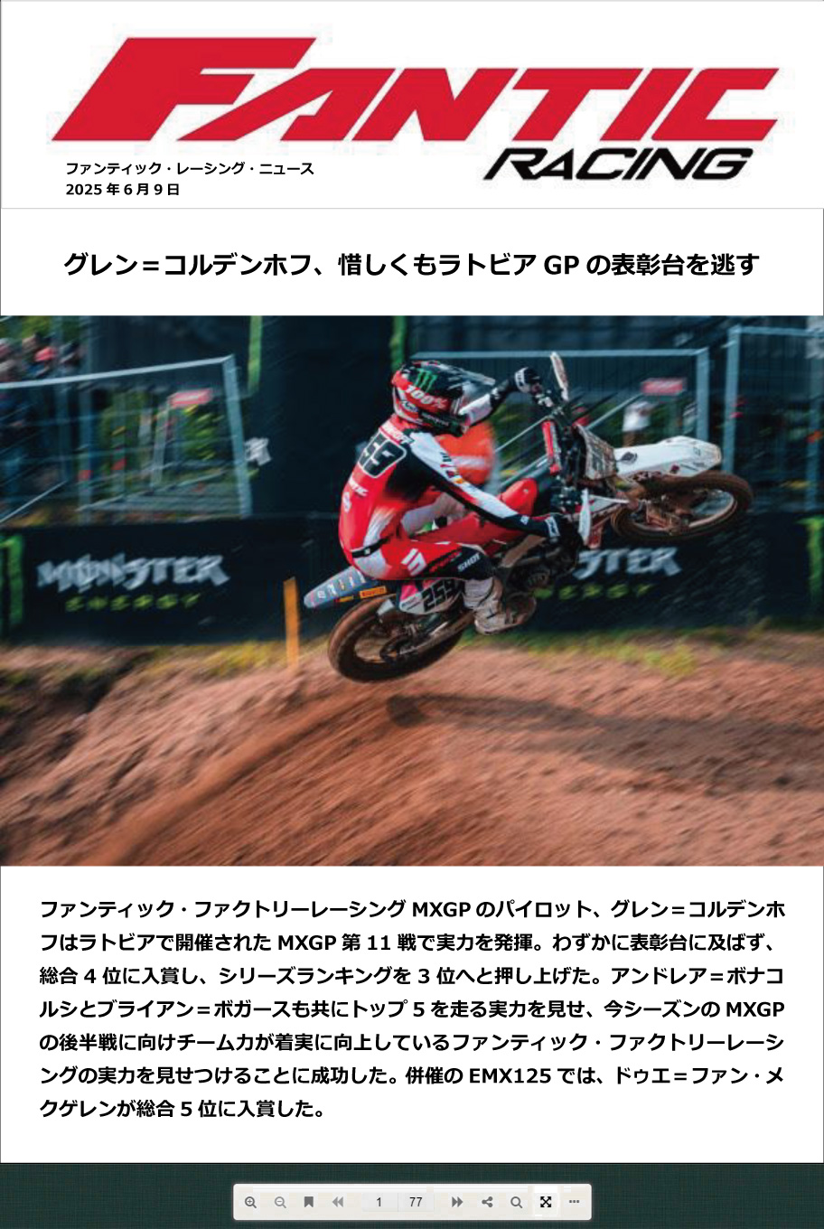 2025FANTIC RACING NEWS「MXGP世界選手権。グレン=コルデンホフ、惜しくもラトビアGPの表彰台を逃す。」