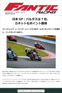 2025FANTIC RACING NEWS「Moto2世界選手権。ファンティック・レーシング、マンダリカで躍進!」