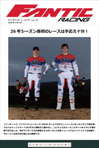 2026FANTIC RACING NEWS「MXGP。26年シーズン最初のレースは手応え十分!」